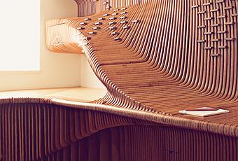 A digitally fabricated design for a home office in London boasts secret compartments for coralling the trappings of a modern workspace.
