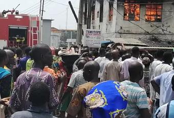 According to reports, the fire which started around 1.20pm, razed a popular building and the row of shops where mattresses, clothes, household goods and electronics are sold.