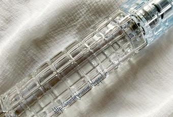 It comes in pretty aqua blue- crafted transparent glass bottle with a usual spray system tightly packed with a similar plastic cap.