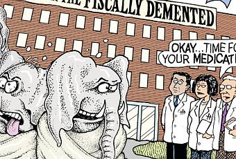 Fiscally Demented Political Cartoon is by Monte Wolverton at Cagle.com.