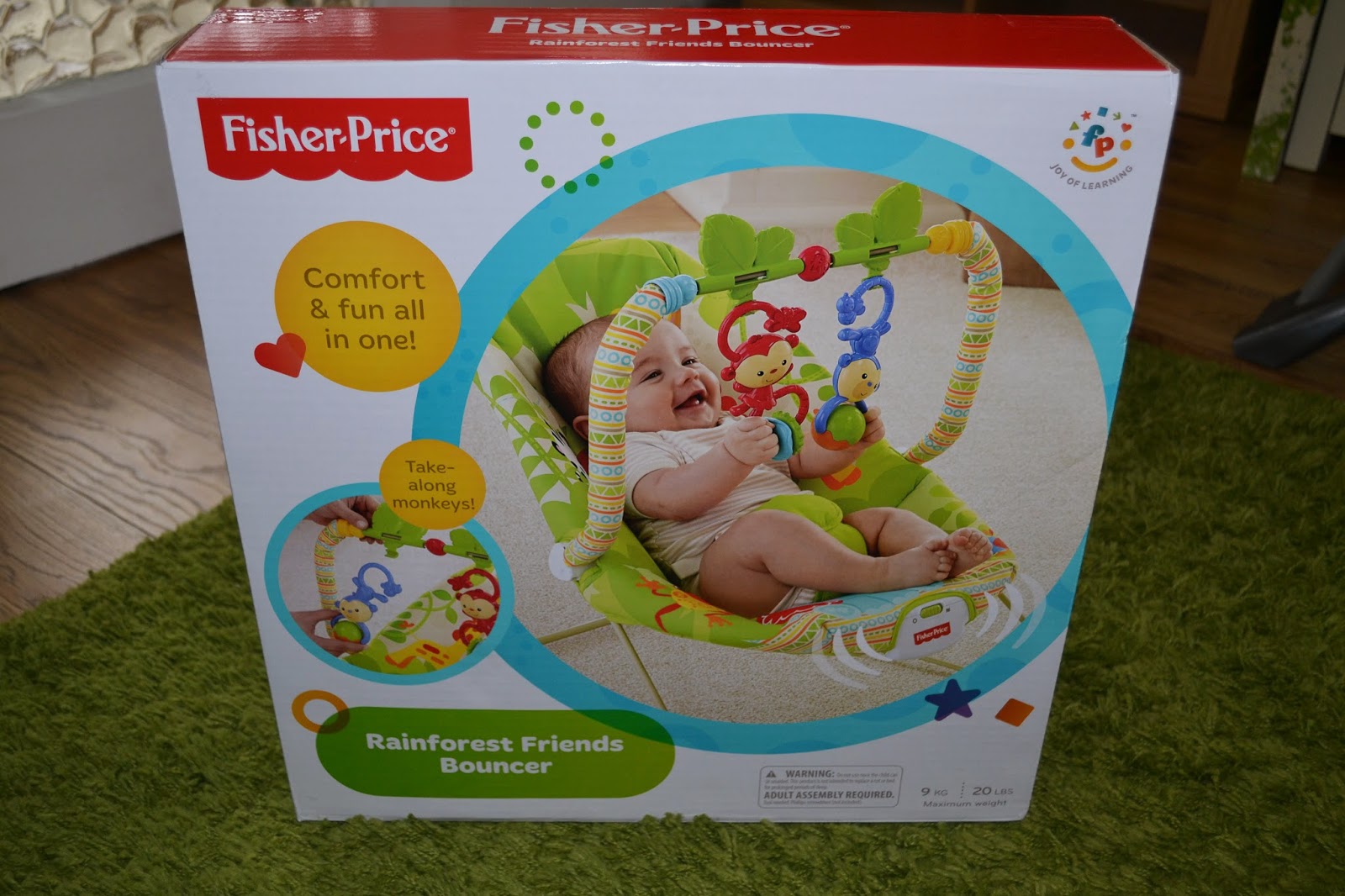 After our recent success with the Fisher Price Rainforest infant to toddler rocker and the Fisher Price Kick and Play Piano gym I was excited to let The Little Man loose with the Rainforest Friends bouncer.