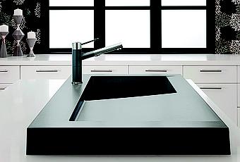 Rising only three inches above the countertop, the Red Dot Award–winning Modex features an integrated drainboard. The engineered material, which is 80 percent granite, is scratch- and stain-resistant.