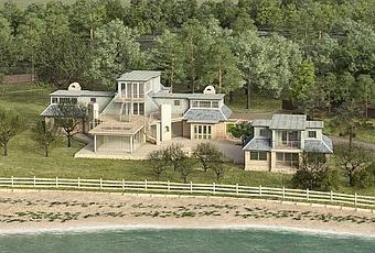 beachfront mansion which can jack itself up in the case of flooding which heats