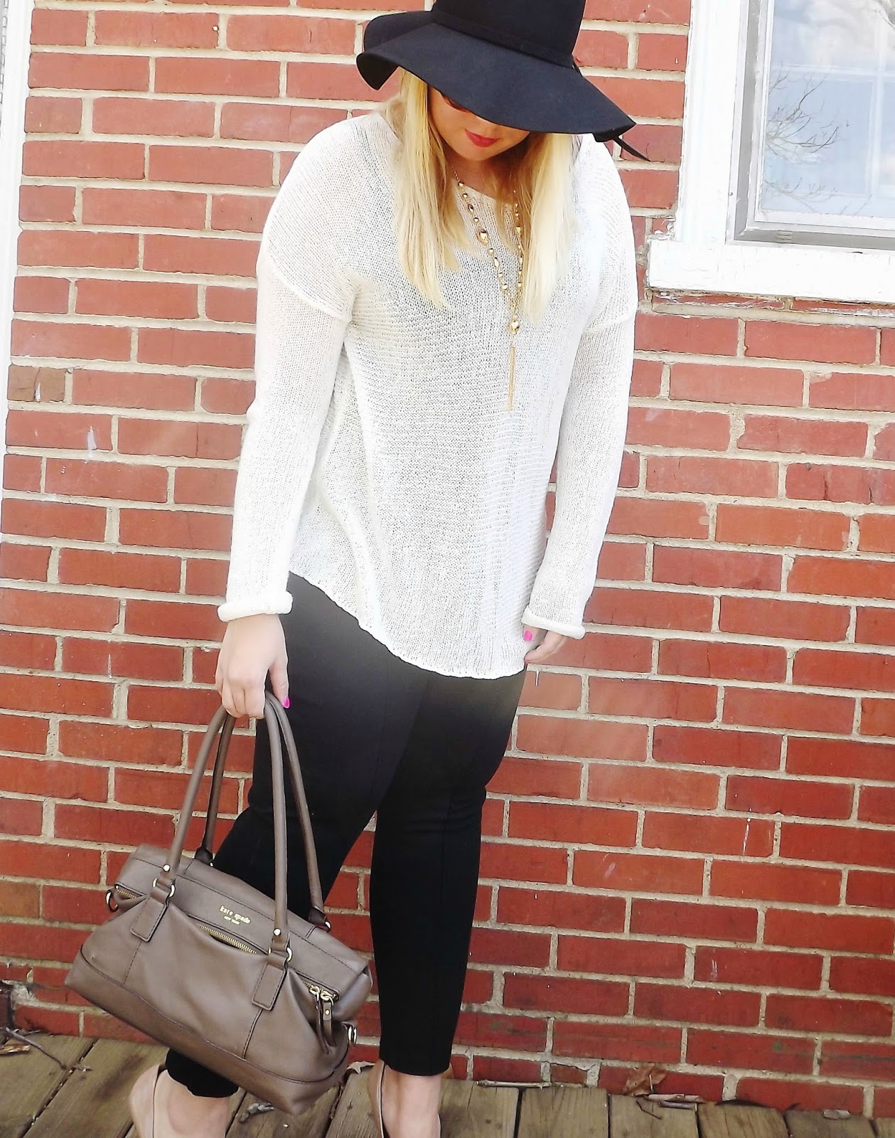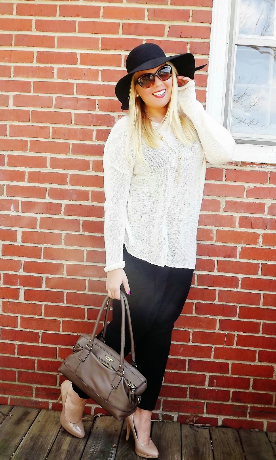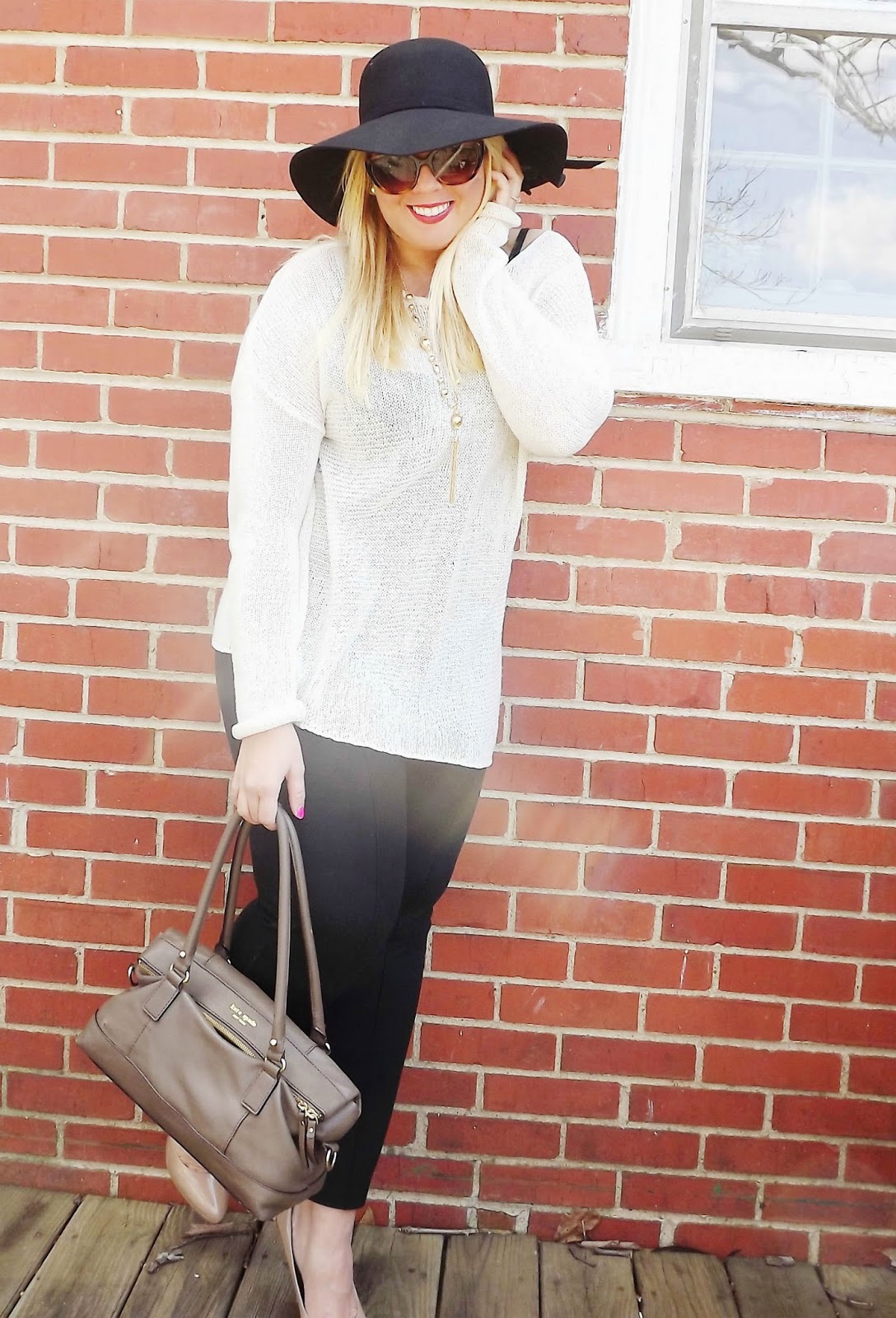 Outfit: Sweater- Acrobat, Travel Pants- Lilly Pulitzer, Floppy Hat- Nordstrom, Pumps- BCBG, Purse- Kate Spade, Necklace- Cato Fashions, Sunnies- Betsey Johnson My new floppy hat FINALLY came in (just in time for spring.) The hat was on clearance in the juniors section and boy did I get lucky! This outfit just goes to show that wool hats can still work in EARLY spring along with light sweaters and thicker leggings. This neutral look has class to it but still has that blogger/ ALMOST hipster vibe. Enjoy this gorgeous weather!xoBCC