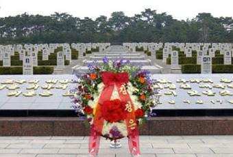 Floral wreaths were delivered on behalf of current leader Kim Jong Un (Kim Cho’ng-u’n), the KWP Central Committee, the SPA, DPRK Cabinet, the Ministry of the People’s Armed Forces, the Ministry of People’s Security as well as “public organizations, ministries and national institutions, units of the KPA and the KPISF [Korean People's Internal Security Forces], institutions of science, education, literature and arts, public health and media, and party and power organs, farms, etc. in Pyongyang.” According to KCNA, ceremony “participants observed a moment’s silence in memory of the martyrs who dedicated themselves to the struggle for the liberation of the country, people’s freedom and happiness, the reunification of the country and the accomplishment of the revolutionary cause of Juche under the leadership of President Kim Il Sung and leader Kim Jong Il” and toured the cemeteries.