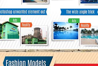 Sometimes the fake out is funny especially in hotels and resorts. For example, an ad shows an infinity pool using a low angle, but in truth, the pool is more like an oversized jacuzzi. You’ll find more hilarious if not annoying hotel ads in the infographic.
