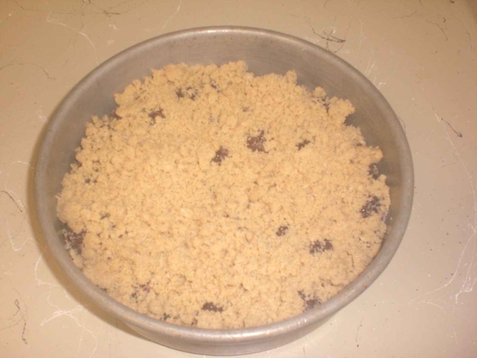 I actually tweaked this recipe by adding a crumb topping! With 1/2 cup all purpose flour, 1/4 cup brown sugar, 1/4 cup butter and blend until crumbly in texture.