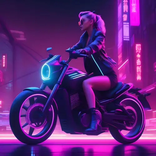 Well, here’s image 1 it generated for the prompt “Girl riding a bike” with “NeonPunk” selected for the style.
