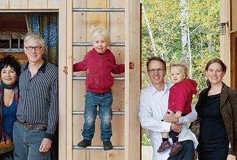 Although the structures share a solar panel array, the families heat their individual spaces with wood.