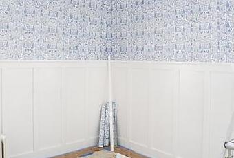 4. Last but not least, the wallpaper went up above the paneling. We used Nethercote from Hygge & West.