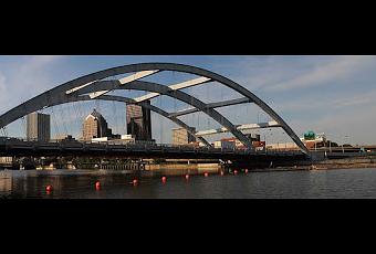 On the night of the ‘super moon’, I was with a group of ca. 30 photographers in downtown Rochester. More precisely, we were in the Corn Hill area along the Genesee River, a great spot for all kinds of shooting. As it turned out, there was more to be engaged with than the moon. Today’s post and those in coming weeks will present some of both. This panorama of the sky line and ‘Freddie-Sue’ Bridge [properly known as the Frederick Douglas-Susan B. Anthony Bridge] was ‘merged’ in Photoshop Elements v.8. from at least five images. Though I must confess that it should be cropped in from the right. However, since I submitted this to our local newspaper for publication [see my posting of July 11 below for an example], and they require a 5:1 aspect ratio, while not optimized for composition the image is still kinda cool.