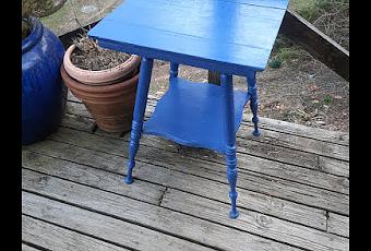 The severely faded door to the greenhouse got a new coat, and the little table on the front porch, whose varnish was cracking, was treated to some Wool Branch Blue.