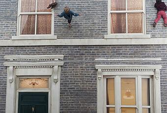Argentine artist Leandro Erlich created this interactive optical illusion for the Barbican in London. An angled mirror reflects the facade of a faux terrace house laid out on the ground, enabling people to set up funny and sometimes alarming shots. Sound confusing? It is, kind of. But awesome! More info here.