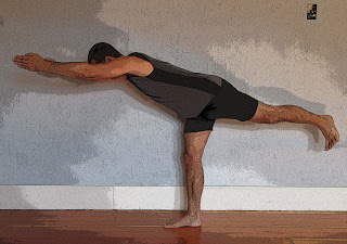 Any standing yoga poses where your front leg is bent towards 90 degrees and is held statically will help to strengthen the front hip muscles as well as the piriformis muscles described in my post Friday Q&A: Recovering from Piriformis Syndrome on the back of the hips.