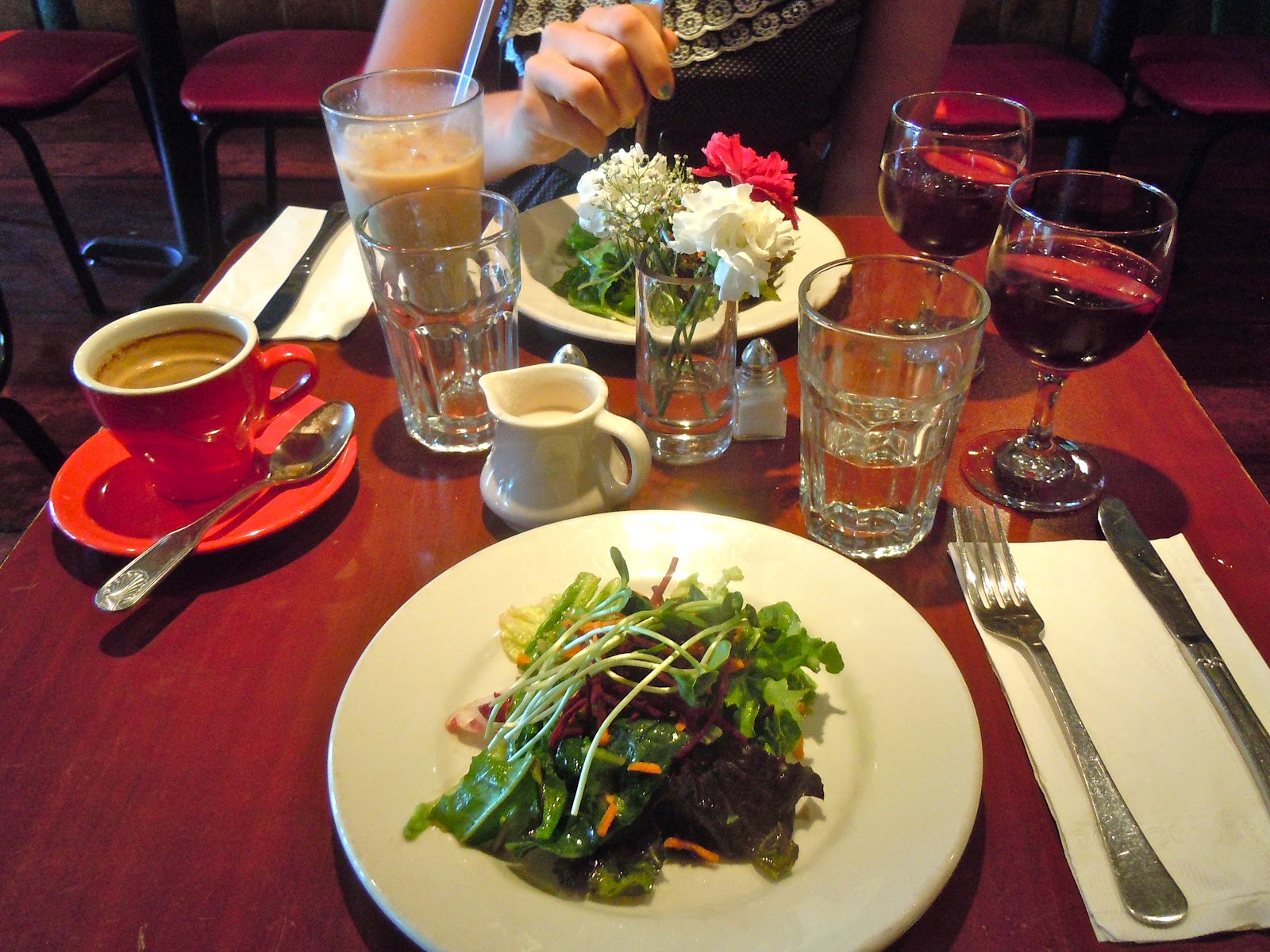 Strong coffee, non-virgin sangria, tasty vegan fare, fantastic conversation, and a cozy atmosphere... on a Friday morn? I'd like to think it was one helluva second date. One of my best. I also love knowing I still have a brunch to look forward to this weekend. Hasta mañana, Patrick Swayze, ice cream, and mimosas.