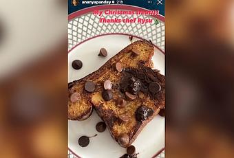 Ananya Panday has also shared snippets from her delicious Christmas morning on Instagram Stories. The actress enjoyed caramelised bread with choco chip toppings. Yummilcious, did we hear? Well, well, it was indeed a delectable “Christmas treat” for Ananya. Courtesy: Her sister Rysa Panday. Oh yes, Ananya’s sister prepared the amazing platter. How do we know? The actress announced it on the social media platform. The text attached to the post read, “My Christmas treat. Thanks chef Rysa”. She also added the signature holiday emoji to the post.