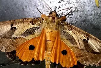 Eudocima phalonia, the common fruit-piercing moth. The species was first described by Carl Linnaeus in his1763 Centuria Insectorum.