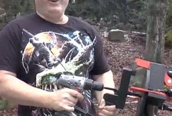 Strapping four cap-guns to a disk setup with a clever handle to pull the trigger, Joerg has used a powerful drill to spin this disk really fast, turning this home made system into a fully automatic machine gun. Check out the video to see his demonstration. You just gotta love his evil laugh.