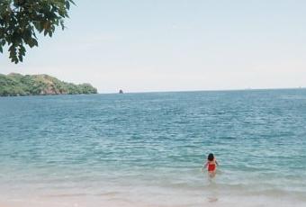 The only remaining picture from our honeymoon where I am in the red bathing suit.After that experience, I was a bit more gun shy with swimwear. Strategic rouching, dark prints to camouflage curves, brands that specialized in slimming the figure. While I felt more secure in such suits, I often felt they looked too old and somber for my age and personality. After Emerson was born, I was so uncomfortable with my new figure I welcomed the black gathered fabric with strong mesh interiors to suck in my flesh. It felt like a suit of armor to defend me against…