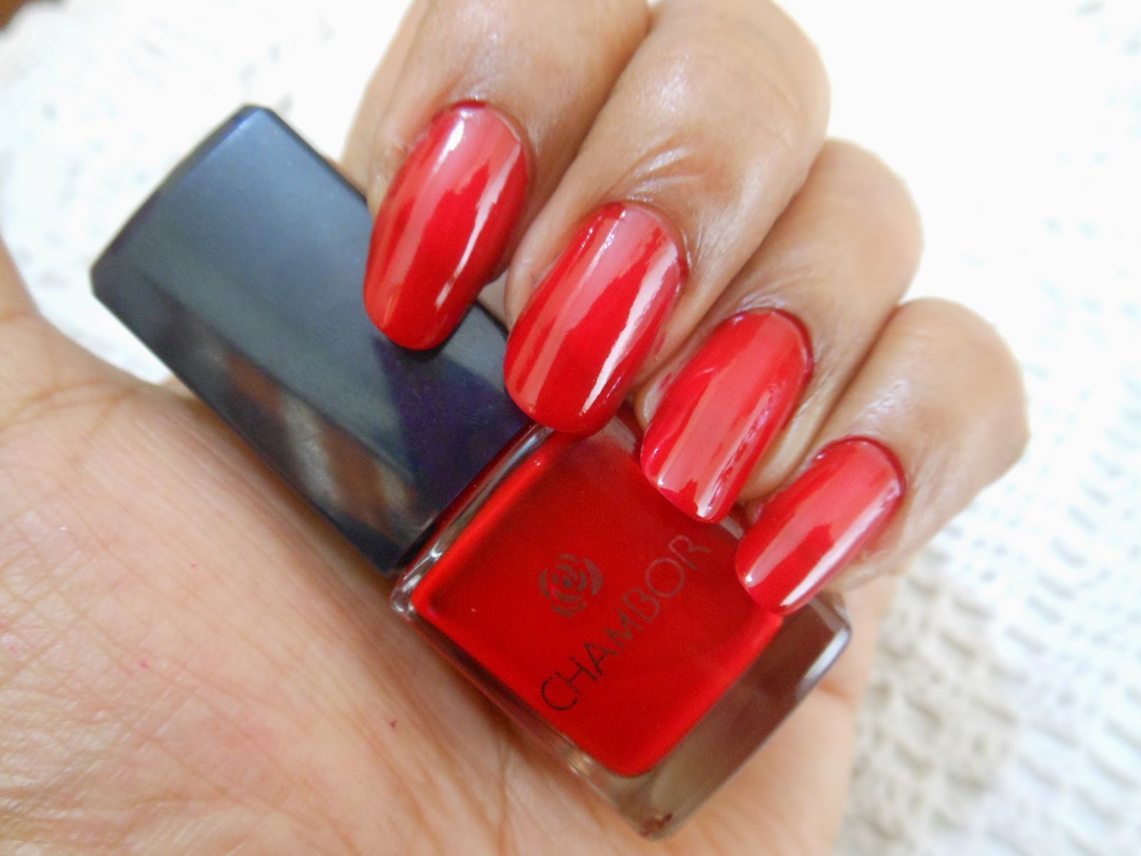 I personally like rich, dark nail colors because they tend to brighten up my fingers and go well with almost all the outfits. Currently I am wearing Chambor Nail Vernis (302) Red Revolution.