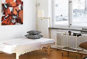 This genuinely functional and relaxing Stockholm flat is characterized by an instinctive sense of light and openness—a Scandinavian design trait I simply love. The apartment is predominantly white which helps enhance the beautiful artwork and colorful collection of accessories. Although it's a modern and minimal space, the fireplace gives the apartment a touch of old charm, honoring the building's history.