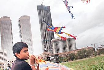 Once again families gather for sunset at the Galle Face Green and play together and enjoy the street foods, following the exit of the ‘Aragalaya’ (struggle) protesters who occupied the area for several months. Here a child with the kites brought to the area by a kite seller. Picture by Wimal Karunatilake