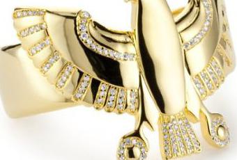 The Egyptian-inspired cuff is a dramatic fashion statement with this gold-plated brass with cubic zirconia accents. Your sense of style will soar. The cuff measures 2"x2"x2" and is the perfect accessory to any summer wardrobe. For more information or to order, click here.