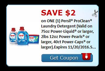 Save $2.00 on ONE (1) Persil® ProClean® Laundry Detergent (Valid on 75oz Power-Liquid® or larger, 2lbs 12oz Power-Pearls® or larger, 40ct Power-Caps® or larger).Expires 11/20/2016.Save $2.00.