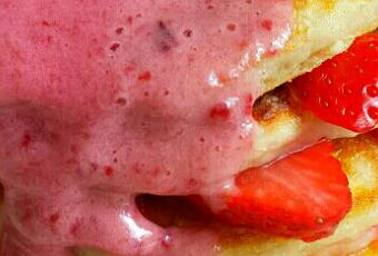 Gluten free vegan banana and strawberry pancakes, with cherry banana ice cream. Recipe over on the Instagram page; tonic_nutrition