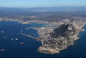During the War of the Spanish Succession, Britain took control of Gibraltar in 1704 after Spain surrendered, and “the Rock” subsequently became a British colony and a symbol of British naval strength. Gibraltar is a British Overseas Territory located at the southern tip of the Iberian Peninsula, bordered to the north by Spain. The landscape is dominated by the Rock of Gibraltar at the foot of which is a densely populated town area, home to over 32,000 people, primarily Gibraltarians. In 1704, Anglo-Dutch forces captured Gibraltar from Spain during the War of the Spanish Succession on behalf of the Habsburg claim to the Spanish throne. The territory was ceded to Great Britain in perpetuity under the Treaty of Utrecht in 1713. During the Napoleonic Wars and World War II it was an important base for the Royal Navy as it controlled the entrance and exit to the Mediterranean Sea, the Strait of Gibraltar, which is only 14.3 km (8.9 mi) wide at this naval choke point. It remains strategically important, with half the world's seaborne trade passing through the strait. Today Gibraltar's economy is based largely on tourism, online gambling, financial services and bunkering.