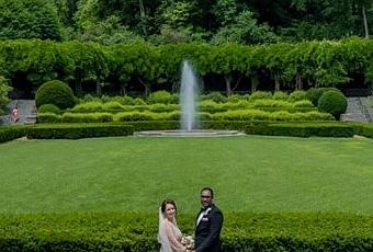Karthik wore tuxedo and black tie and Gina wore a sparkly long gown. Her flowers and hair and makeup were organized by Karthik’s sister, so I cannot take credit for those! After the ceremony, they took photos around the Conservatory Gardens and then left from there for lunch with their guests.