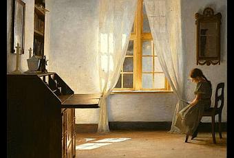 This is Girl Reading, painted in 1901 by the Danish artist Peter Ilsted (1861-1933). Together with his brother in law Vilhelm Hammershøi and their friend Carl Halsoe, he was a member of what was known as the Copenhagen Interior School. So yes, they painted interiors, but they also painted women and girls, often reading or engaged in other quiet pursuits, but almost invariably seen from behind. There's something extraordinarily appealing, to me at at least, about these back views. I've no idea why, though I'm sure some art historian or psychologist could tell me.