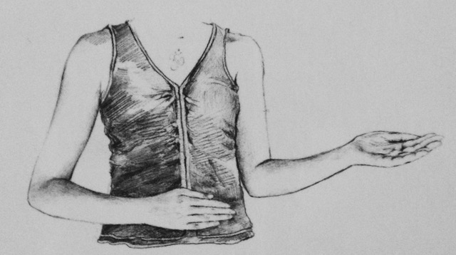 2. Cup your left hand and hold it facing upward at the level of your navel and slightly angled to the left of your body, with your forearm parallel to the earth.