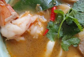 We started off by sipping the Meen Rasam, a seafood broth oozing out the loveliest aromas that can ever hit your senses. Moving slowly to appetizers, we tried the Thord Mun Pla which are crunchy Thai fish cakes with the pungency of kaffir lime, served to us with sweet chilli dip. We next got some steamed fish that is always a hit among those who love healthy food despite shamelessly sneaking in bites of the prawn crackers. To mar its effect, there I was sipping coconut water, balancing my whole act.