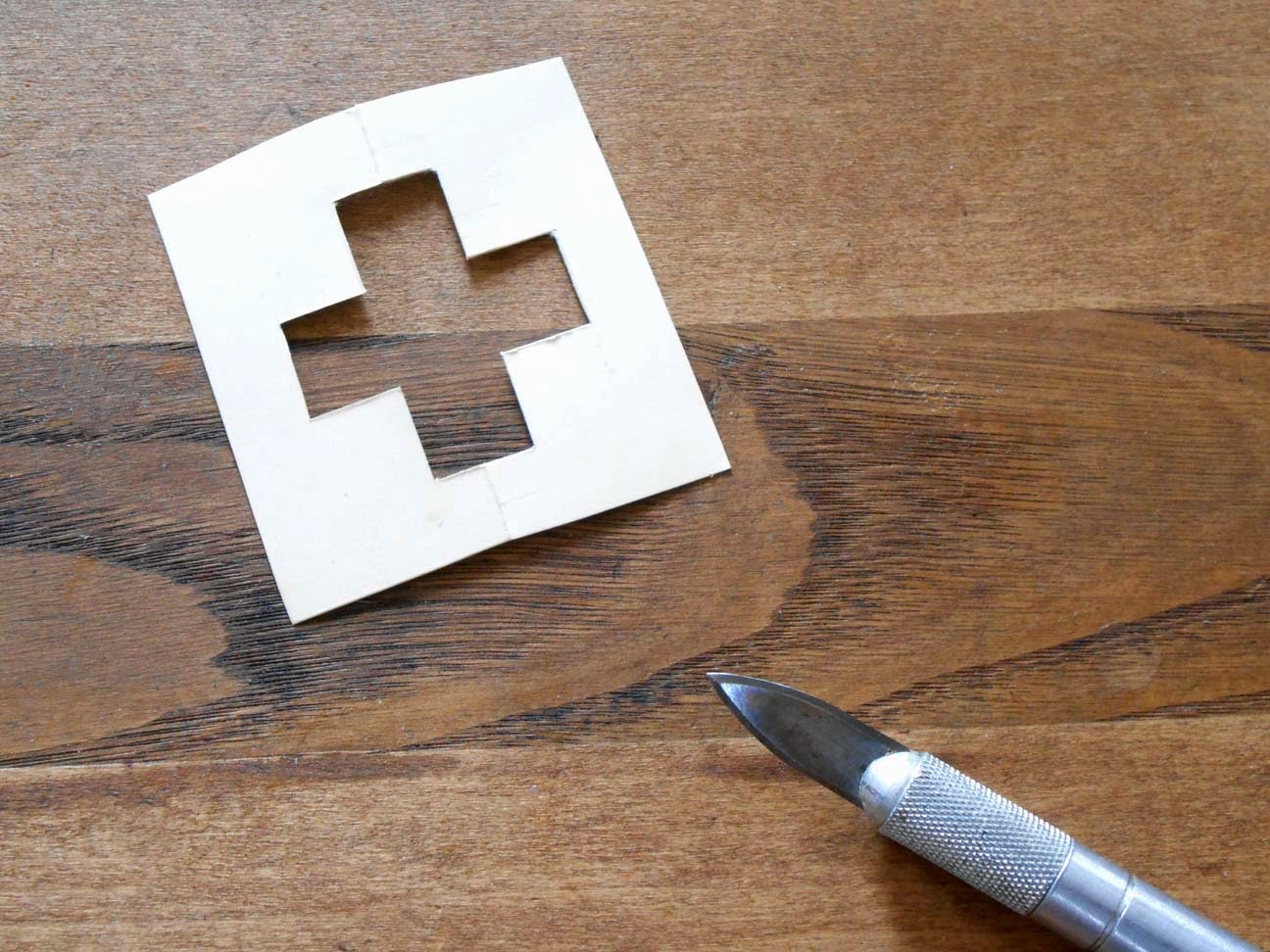 Prepare you DesignStep 1: Make a simple stencil for your pattern. My gold cross is 1/2" long and wide, giving me a total design area of 1 1/2" x 1 1/2"