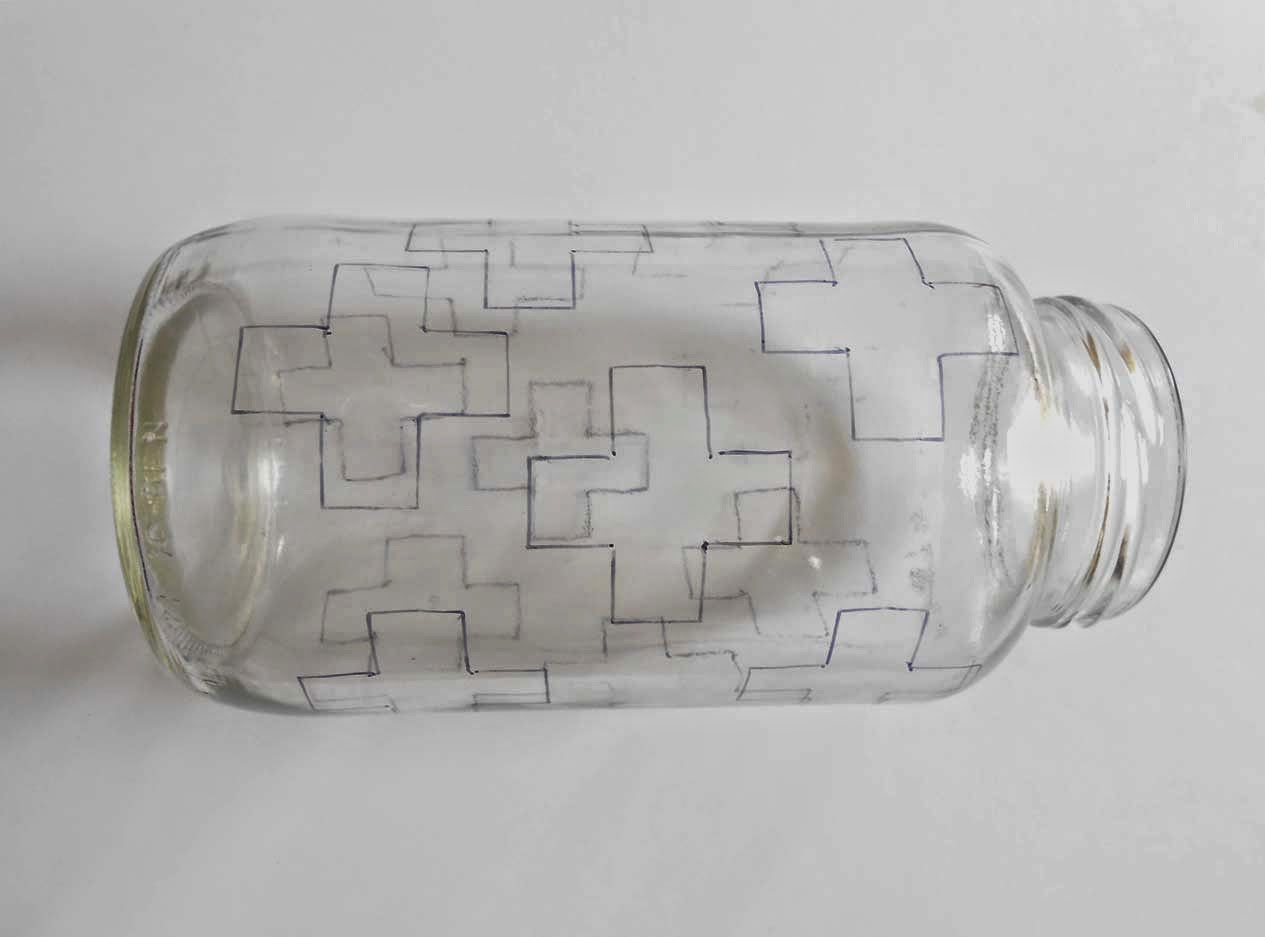 Step 3: Repeat until you have the desired amount of designs drawn on to the jar. It's worth keeping in mind that the more designs you have, the more time you'll need to finish the project. If patience isn't your thing, you may want to go with a less-is-more approach or simply enlarge your stencil a bit.