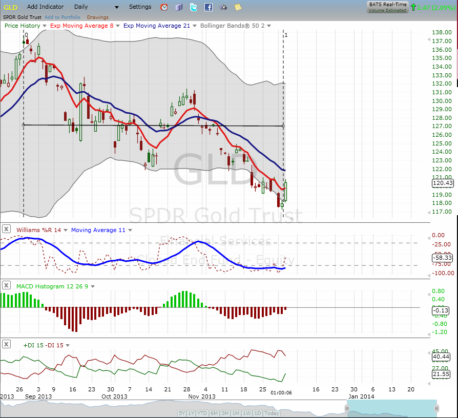 This is the cycle turn time for Gold and today we have a candle move off the lower bollinger bands (50 period) indicative of a bottom being put in. How long term the bottom is we will need to see the move first. Here is the chart: