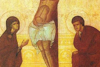 The title above the icon is the Crucifixion of our Lord, and there are six characters here
