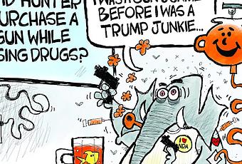 GOP Junkie With A GunPolitical Cartoon is by Clay Jones at claytoonz.com.