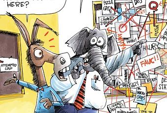 GOP Loves ConspiraciesPolitical Cartoon is by Dave Whamond at Cagle.com.