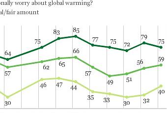 According to a new Gallup Poll (conducted March 7th through 10th of a nationwide sample of 1,022 adults -- with a 4 point margin of error), shows that only 40% of Republicans worry about global warming (either a great deal or a fair amount). That number has been as high as 47% as recently as 2007, but the Republican worry about global warming quickly dropped to 35% after President Obama was elected (and went down to 33% and then 30% in the next two years). Was that 17 point drop just because an African-American was elected president? Probably, because the global warming situation certainly hasn't improved.