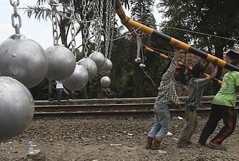 With heavy heart – S. Sampathkumar 24th July 2018. PS :The picture that you saw at the start of the post are large-sized concrete balls strung above railway lines to stop 'roof riders'. Railways in Indonesia have hung these concrete balls above train tracks at select places in order to prevent commuters from riding on carriage roofs. The first balls were installed just above carriage-height near a station outside the capital, Jakarta. Previous attempts to deter roof riders included spraying roofs with paint, spreading oil on carriages and hiring musicians to perform safety songs. Reportedly, all those initiatives failed and this is hoped to be the ultimate deterrent. Roof riders also face the possibility of imprisonment. The authorities there believe, that these balls would deliver serious blows to the head if they didn't knock a person off the roof of a train - will be enough to deter 'train surfers'.Looks cruel and barbaric but that menace of voluntarily endangering life has to end somehow.