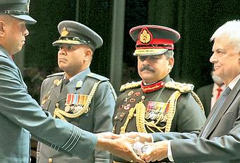 The Graduation Ceremony of the Defence Services Command and Staff College (DSCSC) Course No 16 was held at the Nelum Pokuna Theatre on Thursday (8). President Ranil Wickremesinghe was the Chief Guest. A total of 127 officers comprising 76 Officers from the Sri Lanka Army, 26 Officers from the Sri Lanka Navy, and 25 Officers from the Sri Lanka Air Force graduated at the ceremony. In addition, 11 foreign graduates from Bangladesh, India, Maldives, Nepal, Pakistan, Oman, Rwanda, Saudi Arabia, Senegal and Zambia were among those who graduated on this occasion. President Ranil Wickremesinghe presenting the award to an SLAF officer at the event. (Picture by PMD)