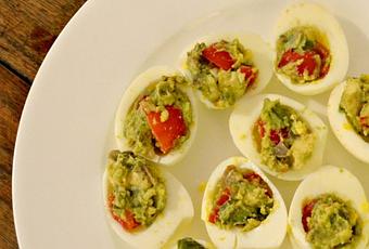 - Spoon guac mixture into 12 egg white halves. Serve immediately.