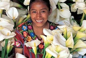 Here you will see traditionally dressed villagers in a kaleidoscope of colours. Flower vendors adorn the steps of the cathedral, making it a beautiful scene of color and smells. The vendors set up their stalls the night before and spend the night sleeping beside their wares. As the town is 6,500 feet above sea level in the Guatemalan highlands, it can get very cold for those sleeping in the street.
