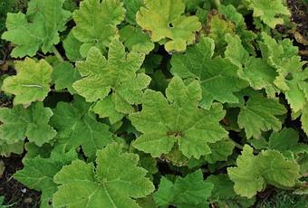 And the original one? Er, not so good. Here it is. It was doing as well as the other one – until last year. In May 2010, as it burst into growth, I scraped aside its heavy winter mulch (they’re not hardy and need winter protection) just in time for a heavy, late, hard frost! I’m such an idiot – I thought I was being helpful! Didn’t kill it but seriously knocked it back. Generally though, it doesn’t seem too happy in this spot and I think it might be a little too dry for it. Might just dig it up, split it (it’s actually a big plant despite the size of its leaves) and relocate.