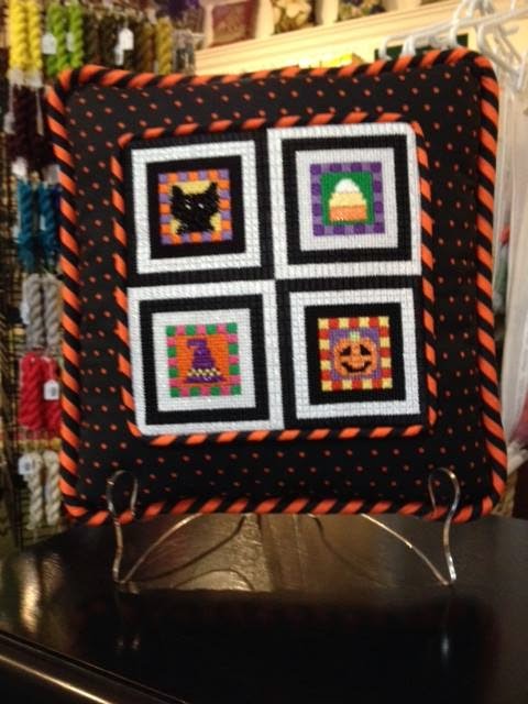 Courtesy of Needlepoint.com in Raleigh, NC is this oldie but a goodie, my Halloween Sampler finished as a cute pillow: