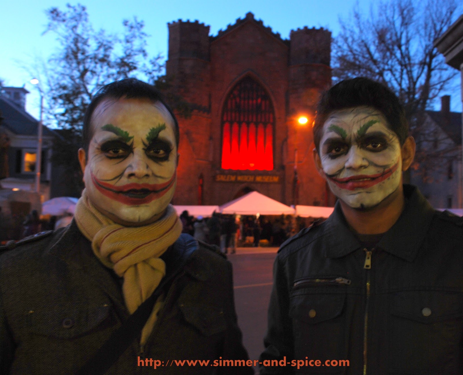 Salem was in a full bloom of Halloween Celebration, streets were crowded with people wearing masks, Halloween dresses, makeup in spite of the freezing temperatures.One could find sale of various winter clothes , masks, jewellery , people offering face makeup services so that you can look spooky enough :). Seeing people around even we all got into Halloween spirit and got ourselves some spooky witch costumes and got our pictures clicked.