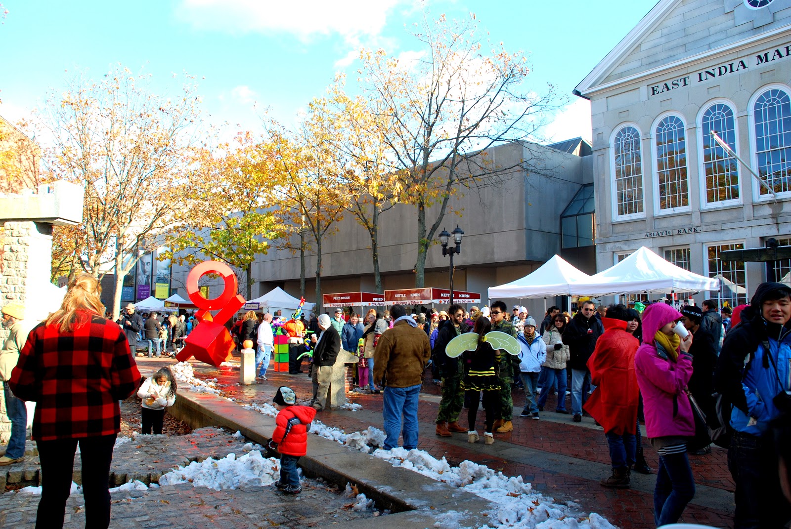 We had planned to visit Halloween parade on Saturday but it all went down the drain due to excessive rains and snowing around Boston.Sunday came out be a better day although it was cold and we could see snow everywhere it was little better with sun shinning up in the sky .So we all decided to go to Salem, Massachusetts which is a place know for its history, which includes the tragic Salem Witch Trials of 1692, the glorious maritime era that left its mark on salem through architecture,museums, and artifacts, it has month-long celebration of Halloween.