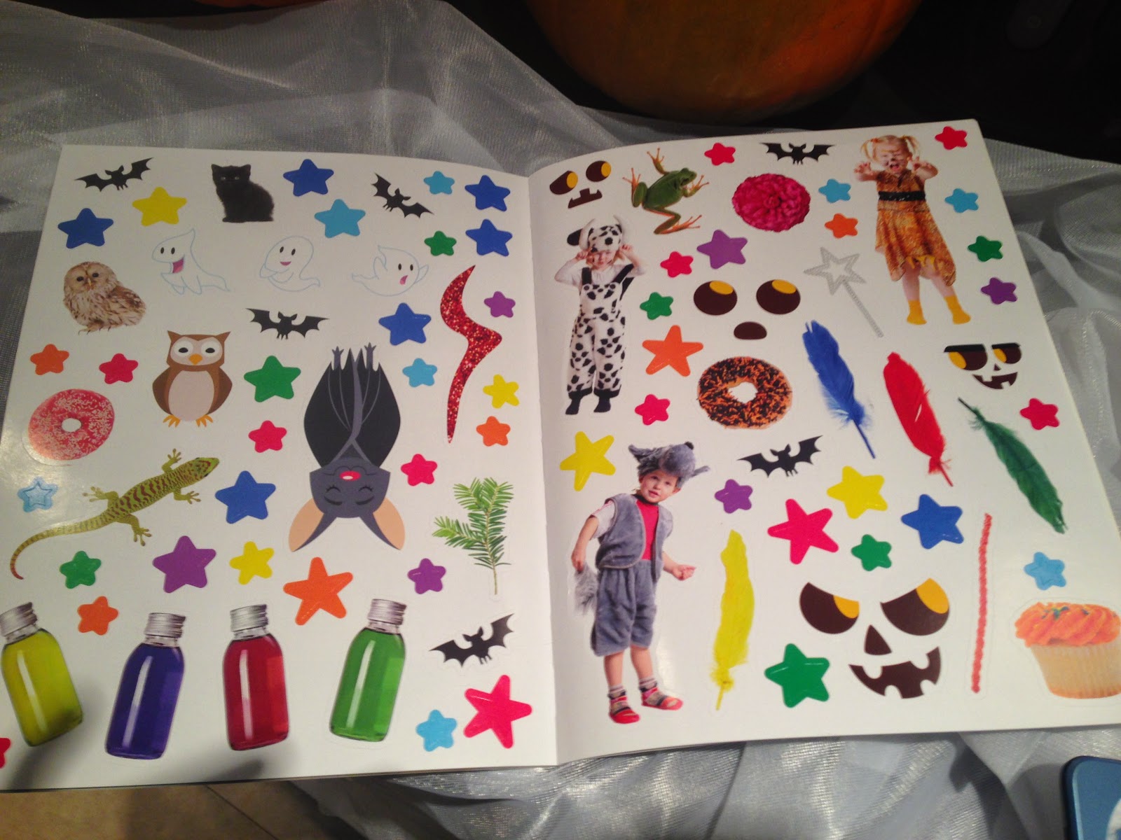 Included are lots of good sized stickers (big and small), all are Halloween themed along with the themed different pages. Jacob is 4 and needs a little help to remove the stickers without ripping them. However I do appreciate having places where the stickers need to go. There are also pages where it encourages the children to use any of the stickers to 'invent their own ingredients to go in to the witches cauldron' or 'choose the funny faces to place on the pumpkins' and so on. All of which promotes discussion and slows down sticker application, as great concentration is needed and applied.